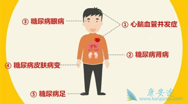大家都知道,糖尿病并不可怕,可怕的就是糖尿病所导致的并发症。所以糖尿病患者在控制血糖的同时,还要预防并发症的发生。那么糖尿病并发症都有哪些呢?下面来看一下。1、糖尿病肾病。是糖尿病患者最重要的合并症之一。在我国目前已成为终末期肾脏病的第二位原因,仅次于各种肾小球肾炎。