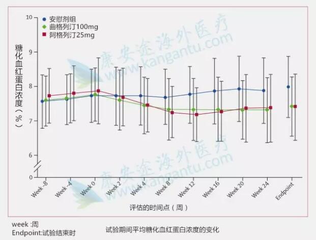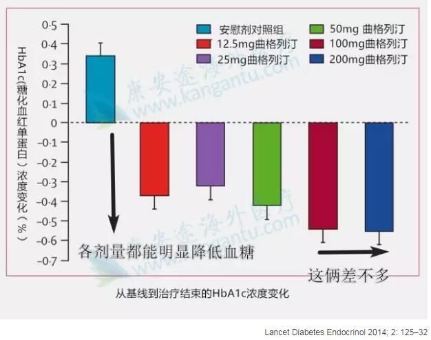 结果发现:5种剂量的曲格列汀都能有效的降低糖化血红蛋白,100mg和200mg剂量效果相当。