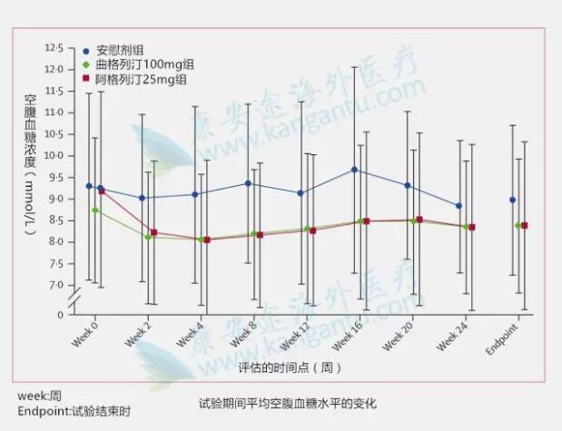 上面2张图,红色-阿格列汀和绿色-曲格列汀折线缠缠绵绵不可分,说明两者降血糖和空腹血糖效果,相当。