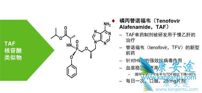 TAF作为国内治疗乙肝的首选药物替诺福韦的升级版,在某些方面有着更加优异的表现,康安途也第一时间推出了TAF的仿制药方案。