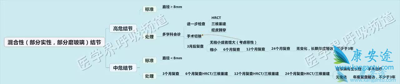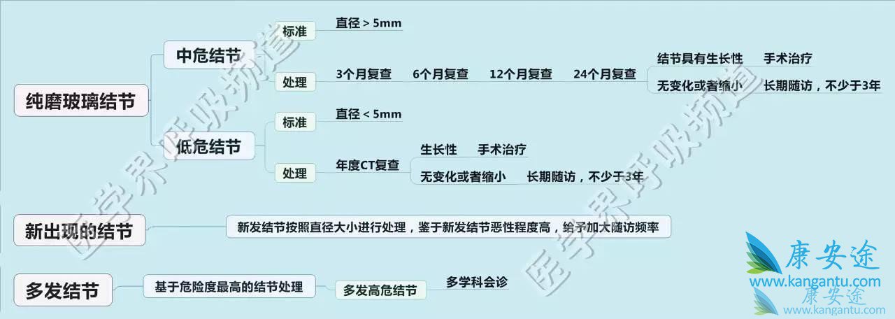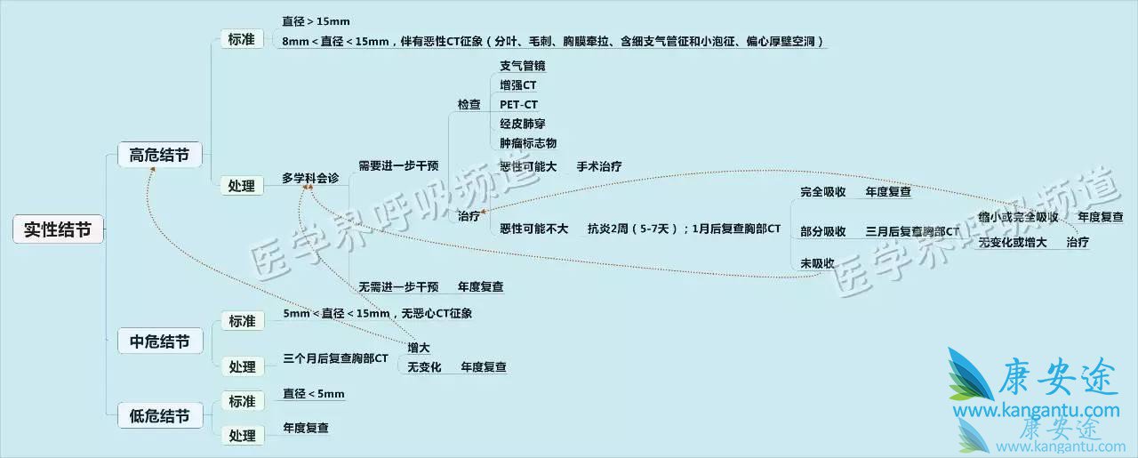 上图为肺结节处理程序思维导图,依据2016肺结节中国专家共识内容综合整理。(温馨提示:大家可以保存在手机上,随时可看~)