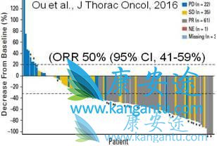 ALUR临床试验结果是跨越15个国家纳入119例患者的一项随机、非盲、对照临床试验。A该试验(NCT02604342)将ALK阳性的 NSCLC患者按2:1比例随机分组至艾乐替尼组或以铂为基础的化疗组(培美曲塞或多西他赛)。纳入试验的患者之前都接受过至少一次铂类为基础的化疗和克唑替尼治疗。主要终点是PFS,次级终点包括总生存期,中枢神经系统进展中位时间和脑转移患者的客观反应率(ORR)。该试验的完整研究数据将在今年晚些时候发表出来。该III期结果的公布将更加奠定艾乐替尼在ALK耐药后的二线治疗地位。