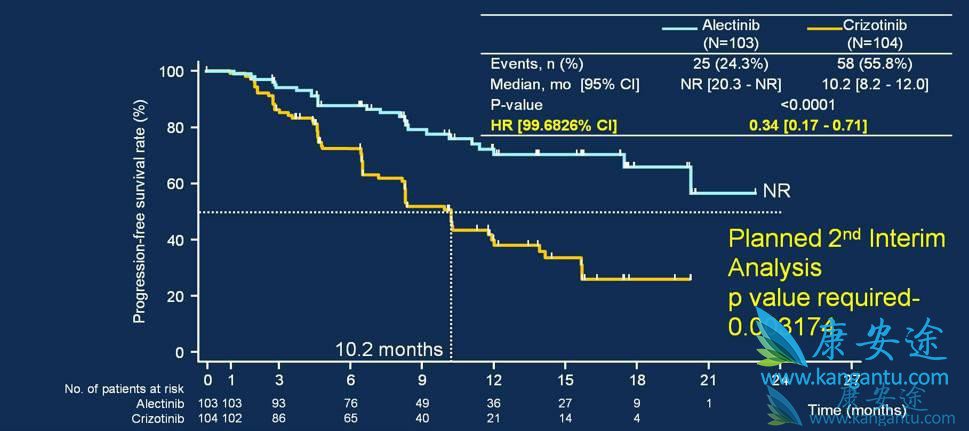 而艾乐替尼除了二线治疗地位外,也进行了一线临床研究,即ALEX试验。之前的中期报告显示,ALK阳性的NSCLC患者初治分别采用艾乐替尼或克唑替尼治疗,PFS较克唑替尼整整延长了10个月以上,这意味着ALK阳性的患者初治如果使用艾乐替尼无进展生存时间可以达到克唑替尼的两倍多。而成熟的数据还未出来,可能更长。该试验的数据预计将于今年上半年公布。一旦公布,肺癌ALK的一线治疗可能会彻底改变,期待!