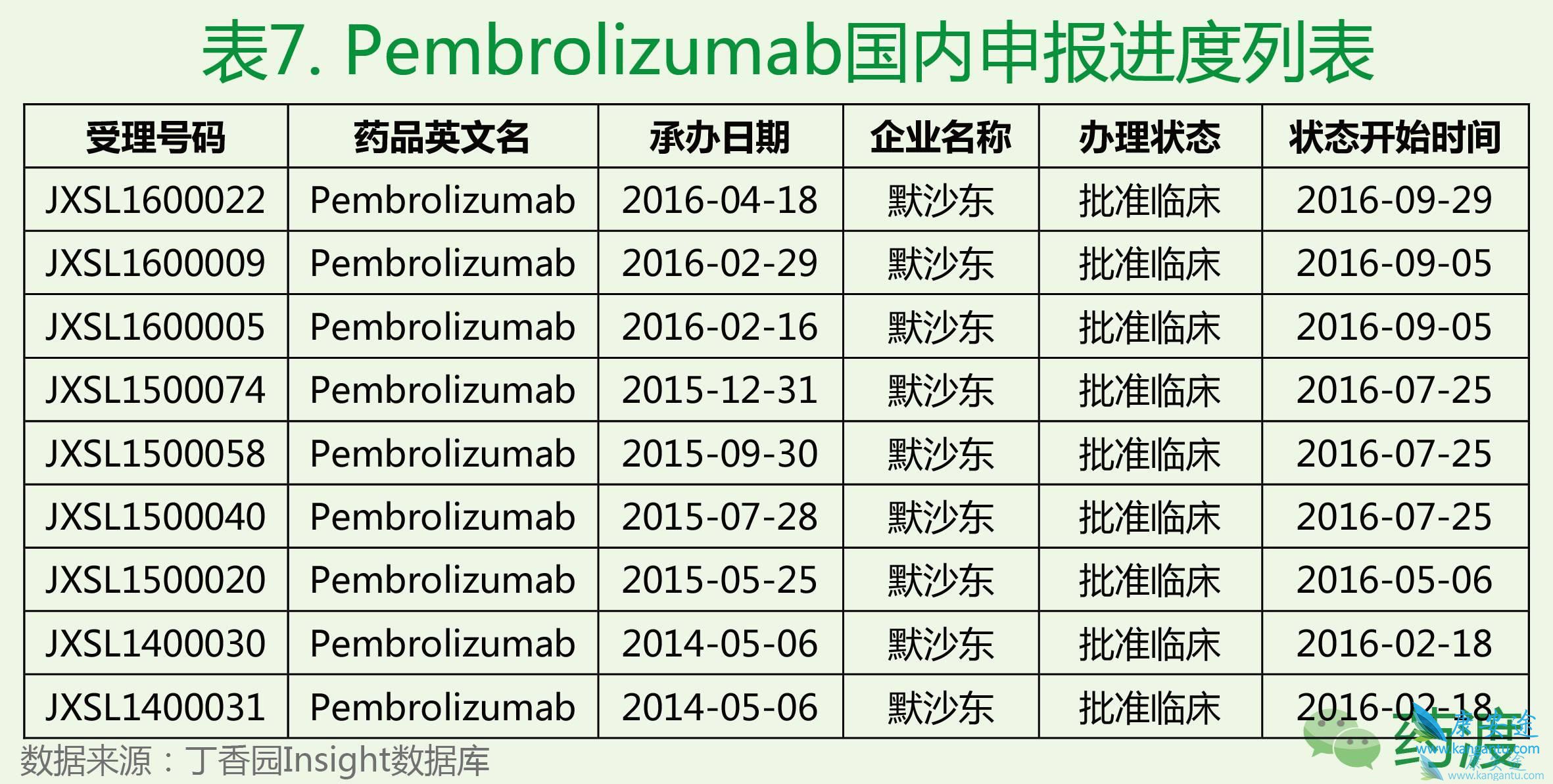 Pembrolizumab黑色素瘤上市时间早于Nivolumab三个月,但其主要适应症非小细胞肺癌批准却晚了Nivolumab七个月,这可能也是其市场屈于Nivolumab的一方面原因。