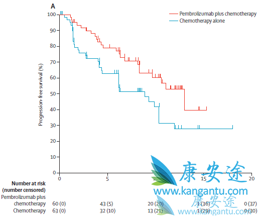 Pembrolizumab联合化疗组中位PFS为13.0个月,化疗组中位PFS是8.9个月,提高了4.1个月。6个月的预估PFS分别是77%、63%。
