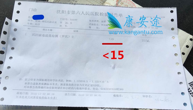 丙肝S女士 年龄:43 分型:2a 来自:沈阳