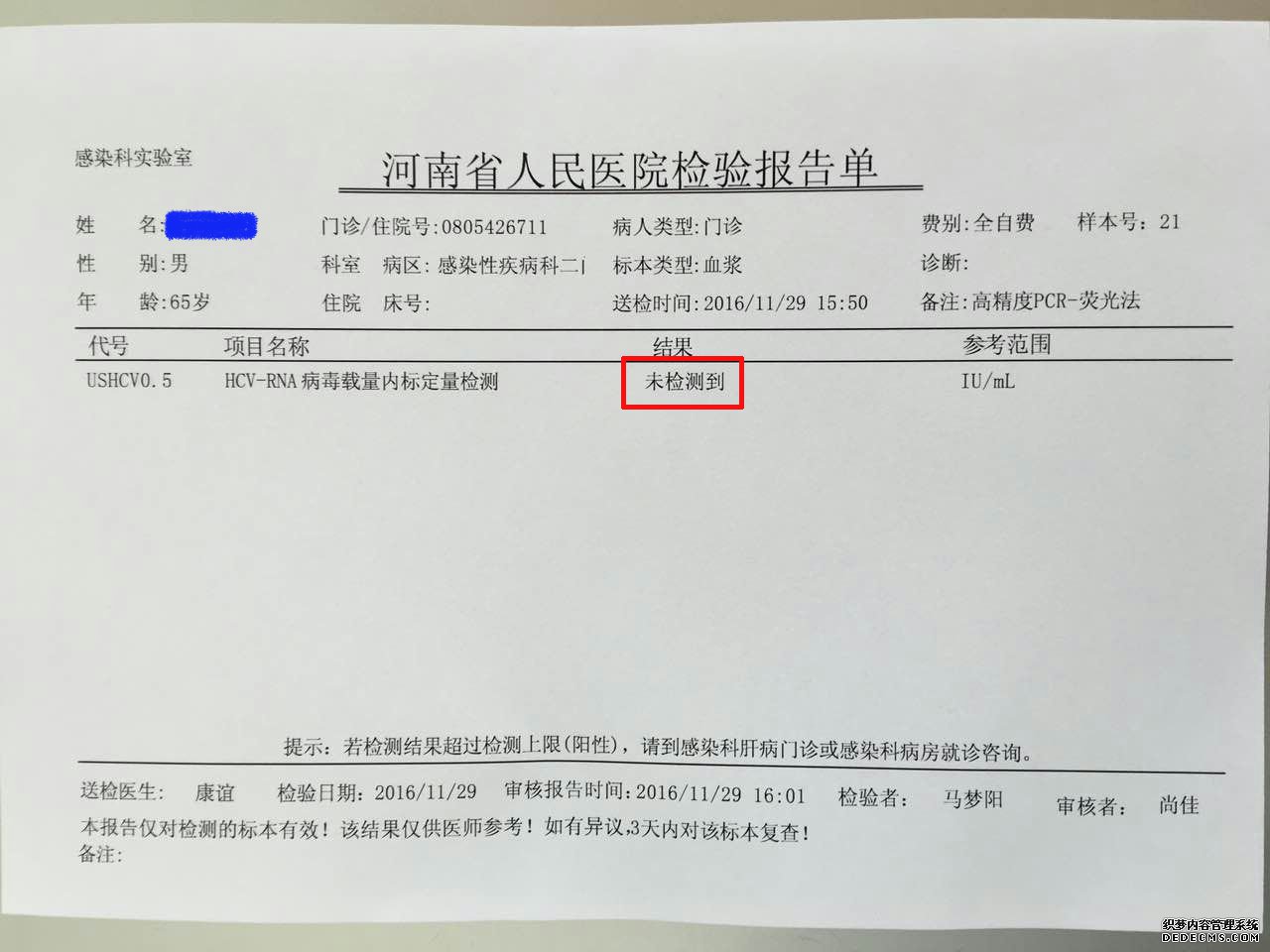 丙肝H先生 年龄:65 分型:1b 来自:河南