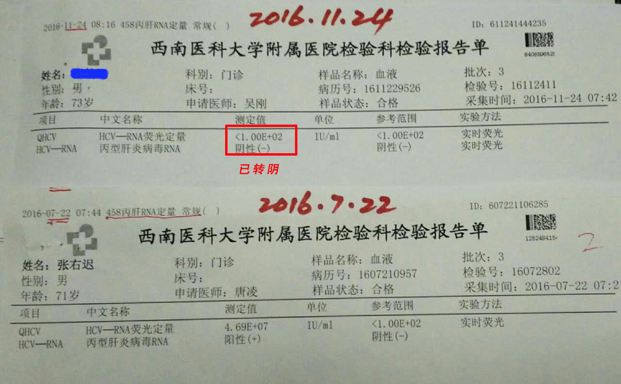 丙肝Z先生 年龄:73 分型:1b 来自:四川
