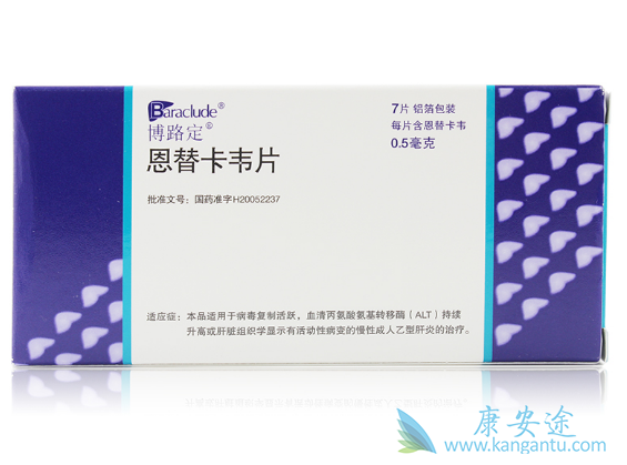 恩替卡韦治疗5年的随访研究表明,HBeAg阳性慢性乙型肝炎患者HBV DNA低于检测下限(<300拷贝/ml)比率94%,ALT复常率为80%。在核苷(酸)类药物初治慢性乙型肝炎患者中(HBeAg阳性或阴性),恩替卡韦治疗5年的累积基因型耐药发生率为1.2%,然而,在已经发生拉米夫定耐药的患者中,恩替卡韦治疗5年的肝脏组织学研究显示,88%(55/57)获得肝纤维化改善,40%(4/10)肝硬化逆转。严重肝病患者有发生乳酸酸中毒的报告,应引起关注。