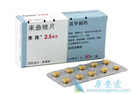 康安途海外医疗 弗隆(来曲唑片),适应症为对绝经后早期乳腺癌患者的辅助治疗,此类患者雌激素或孕激素受体阳性或受体状态不明。对已经接受他莫昔芬辅助治疗5年的、绝经后早期乳腺癌患者的辅助治疗,此类患者雌激素或孕激素受体阳性或受体状态不明。治疗绝经后、雌激素受体阳性孕激素受体阳性或受体状态不明的晚期乳腺癌患者,这些患者应为自然绝经或人工诱导绝经。(该商品为处方药,具有批准文号:注册证号H20140149,符合国家食品药品监督管理局对药品的注册要求。)