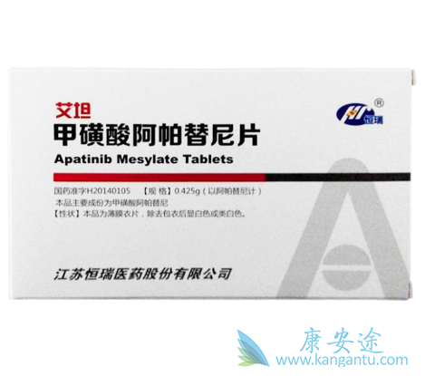阿帕替尼是一种小分子酪氨酸激酶抑制剂(TKI),最先由美国 Advenchen公司开发,后由江苏恒瑞医药股份有限公司和韩国Bukwang公司和美国LSK公司联合研究。阿帕替尼可高度选择性结合并抑制血管内皮细胞生长因子受体-2(vascular endothelialgrowth factor receptor-2,VEGFR-2),从而抑制肿瘤血管生成抑制肿瘤生长。