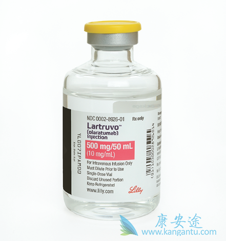 Olaratumab(Lartruvo,奥拉单抗)是在40多年前阿霉素获批之后,第一个用于无法手术和放疗的软组织肉瘤(STS)初始治疗新药。以前对于此类患者,最常用的治疗方法是阿霉素单药或联合其他药物。奥拉单抗是一种人血小板衍生生长因子受体α(platelet-derived growth factor recepterα,PDGFRα)拮抗剂,该药是FDA批准治疗STS的首个单克隆抗体药物。旨在扰乱肿瘤细胞和肿瘤微环境中的细胞上的PDGFRα信号通路。该药通过直接靶向肿瘤细胞以及围绕在肿瘤周围支持肿瘤生长的细胞,发挥抗肿瘤活性。