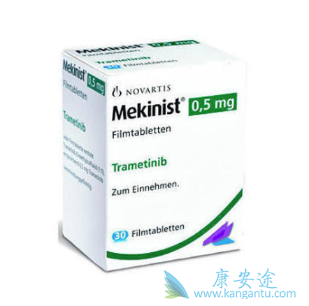 曲美替尼(Trametinib)由GSK研发,商品名Mekinist,是MEK1和MEK2的可逆性抑制剂。2014年FDA批准曲美替尼和BRAF抑制剂达拉菲尼联合治疗BRAF V600E或V600K突变的黑色素瘤患者;除了对BRAF突变的探索,在NRAS突变也做过类似探索,在一项曲美替尼治疗晚期黑色素瘤患者的Ⅰ期剂量递增试验(GSK1120212)中,包括了7例NRAS突变的黑色素瘤患者,其中2例治疗后病情稳定,2例中的1例更是接受了长达48周的治疗。