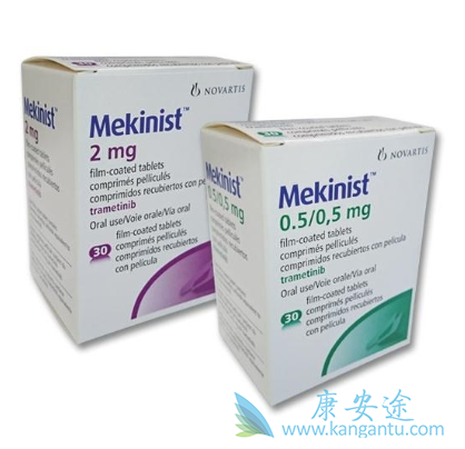 2013年5月29日,美国FDA批准曲美替尼单药治疗BRAF V600E或V600K突变阳性无法切除或转移性黑色素瘤。2014年1月10日,美国FDA批准曲美替尼联合达拉非尼治疗BRAF V600E或V600K突变阳性无法切除或转移性黑色素瘤。2018年4月30日,美国FDA批准曲美替尼联合达拉非尼辅助治疗BRAF V600E或V600K突变阳性黑色素瘤。