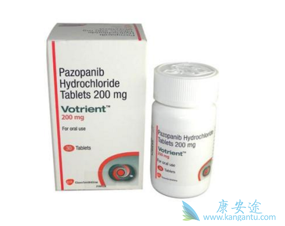帕唑帕尼药物的是一种多激酶抑制剂的成分,该药品的靶点是覆盖了VEGFR1、VEGFR2、 VEGFR3及PDGFRα及β、FGFR1\3、Kit、ItK、Lck等。这些靶点与肿瘤病理血管的生成、肿瘤的生长及肿瘤的进展密切相关。目前帕唑帕尼药品的适用症状是用于晚期肾癌患者,和接受化疗的晚期软组织肉瘤(STS)患者。但该药品对脂肪性STS或胃间质肿瘤疗效尚未确定。