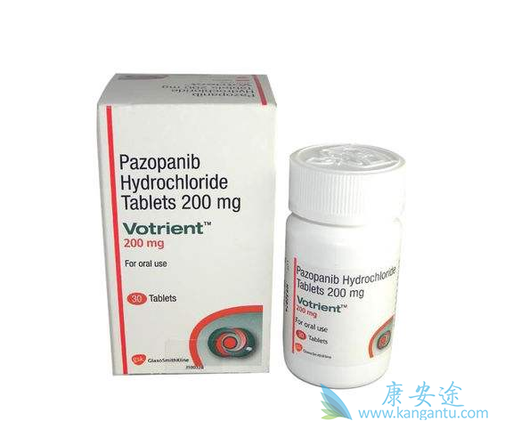 帕唑帕尼药品是含有特异性的作用于血管内皮生长因子、血小板衍生生长因子及几种酪氨酸激酶,已经证实对治疗肾脏肿瘤有效。帕唑帕尼已经被证明对肉瘤有效的口腔靶分子媒介,它可以为这种通过侵害性静脉化疗治疗的罕见疾病提供另一种治疗方法。批准将帕唑帕尼(商品名 Votrient)用于已接受过化疗的进展期软组织肉瘤患者的治疗。帕唑帕尼已经上市并用于进展期肾细胞癌的治疗。当 2009 年被批准后,它成为了第 6 种针对这一适应症的药物。