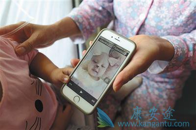 琳琳妈妈手机里的照片,琳琳特别在意她的光头,妈妈就在照片上P了两个蝴蝶结。