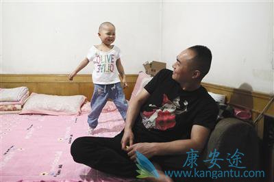 不化疗的日子,活泼好动的美美,黏着爸爸在家和她玩。