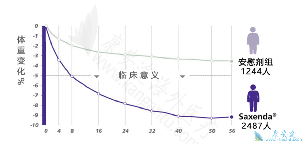 试验结果表明:使用Saxenda®的患者减重效果是安慰剂组的一倍左右。