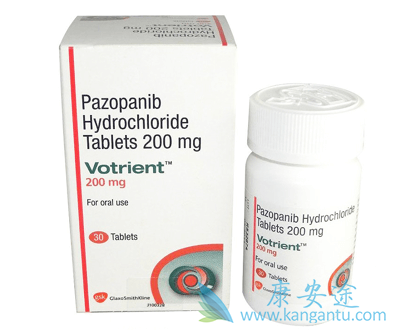 美国FDA批准将帕唑帕尼(商品名 Votrient)用于已接受过化疗的进展期软组织肉瘤患者的治疗。帕唑帕尼已经上市并用于进展期肾细胞癌的治疗。当 2009 年被批准后,它成为了第6种针对这一适应症的药物。帕唑帕尼是特异性靶向血管生成和肿瘤细胞增殖相关受体的小分子酪氨酸激酶抑制剂。它能抑制血管内皮生长因子受体(VEGFR-1、2 和 3)、血小板源性生长因子受体(PDGFR-α和β)、成纤维细胞生长因子受体(FGFR1和3)、干细胞因子受体(c-Kit)、白细胞介素2诱导的T细胞激酶(Itk)、白细胞特异蛋白酪氨酸激酶(Lck)和跨膜糖蛋白受体酪氨酸激酶(c-Fms)。