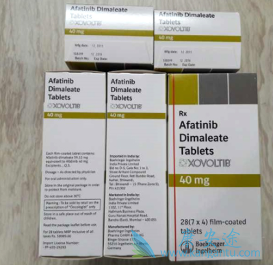阿法替尼(GILOTRIF)是EGFR和HER2酪氨酸激酶抑制剂,具有不可逆性。目前该药已被批准治疗铂类化疗后疾病进展的晚期非鳞状细胞癌和EGFR阳性的转移性非小细胞肺癌。对于EGFR突变的患者,阿法替尼的疗效与吉非替尼和厄洛替尼差不多,对于HER2突变的患者,大可替尼和来那替尼或阿法替尼的疗效欠佳。