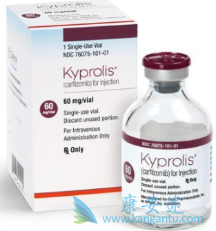 在每组中,约一半患者曾使用过硼替佐米和沙利度胺,38%使用过来那度胺,不到1%使用过卡非佐米。中位随访11.2个月,卡非佐米/地塞米松组的疾病进展风险降低47%。卡非佐米/地塞米松组≥3级的不良反应发生率为67%,硼替佐米/地塞米松组为73%。