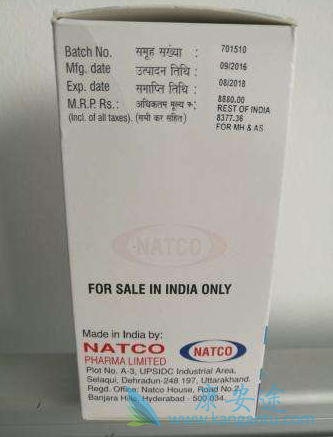 索拉非尼,商品名称:多吉美,英文商品名:Nexavar,英文通用名:Sorafenib。目前市面上的索拉非尼主要有两个版本,一个是拜耳公司研发的原研药,一个是印度Cipla公司生产的索拉非尼仿制药,印度印度索拉非尼价格便宜,疗效与拜耳的一样,所以吃印度索拉非尼的患者更多。