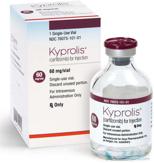 不良反应:(1)在用卡非佐米作为单药治疗的患者中,最常见的不良反应(频率≥20%)为贫血,疲劳,血小板减少症,恶心,发热,呼吸困难,腹泻,头痛,咳嗽,外周水肿。(2)在用卡非佐米作为联合用药的患者中,最常见的不良反应(频率≥20%)为贫血,中性粒细胞减少,腹泻,呼吸困难,疲劳,血小板减少症,发热,失眠,肌肉痉挛,咳嗽,上呼吸道感染,低血钾症。