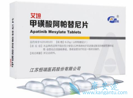 目前,晚期胃癌的治疗方法主要是化疗,但患者在化疗失败后,可以选择的治疗药物非常有限,而阿帕替尼(艾坦)的上市为晚期胃癌二线以后治疗提供了新的选择和治疗芳香,也因此成为首个后线治疗晚期胃癌患者安全有效的小分子靶向药物。多项关于阿帕替尼的临床研究数据显示,与安慰剂组相比,阿帕替尼治疗组患者的总生存期平均能够延长1.8个月。