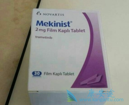 Trametinib(曲美替尼)于2013年5月获批单药用于携带BRAF V600E突变的晚期黑色素瘤患者,是FDA批准的第一个激酶别构抑制剂。它能够竞争结合非ATP结合区域附近的别构位点,并抑制MEK1/MEK2的磷酸化活性,属于III型的激酶抑制剂。Trametinib耐药突变多发生于单药治疗6-7个月后。为了克服耐药性,2014年1月,FDA批准了Trametinib与BRAF抑制剂联用的治疗方案。