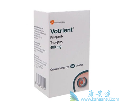 帕唑帕尼是血管内皮生长因子受体(VEGFR)-1、VEGFR-2、VEGFR-3、血小板衍生生长因子受体(PDGFR)-和-、纤维母细胞生长因子受体(FGFR)-1和-3、细胞因子受体(Kit)、白介素-2受体可诱导T细胞激酶(Itk)、白细胞-特异性蛋白酪氨酸激酶(Lck)、和穿膜糖蛋白受体酪氨酸激酶(c-Fms)的一种多-酪氨酸激酶抑制剂。目前服用帕唑帕尼800mg口服每天1次不和食物一起服药(至少在进餐前1小时或后2小时)。
