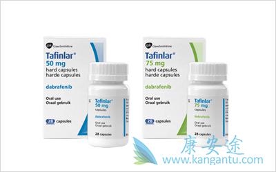 三期临床试验BREAK3研究结果证明,对于BRAF突变阳性的黑色素瘤患者,达拉非尼(dabrafenib)的疗效优于化疗。研究表明达拉非尼适用于近一半的黑色素瘤患者(这些患者均有BRAF基因突变)。该研究纳入了250名播散或无法手术的BRAF-阳性的黑色素瘤患者。专家进行独立审查的结果显示近一半的患者(47%)获得部分缓解(PR),而3%的患者获得完全缓解(CR),而DTIC有效的患者仅占6%。这种新药也提高了无进展生存期,达拉非尼和DTIC用药组的中位无进展生存时间分别是5.1个月和2.7个月。