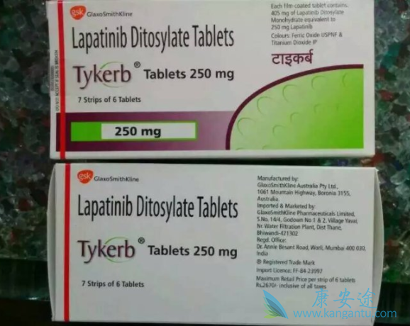 (2)Lapatinib(拉帕替尼)。拉帕替尼被批准可与卡培他滨联合用于经蒽环类药物、紫杉醇及曲妥珠单抗既往治疗的 HER2 过表达的晚期或转移性乳腺癌患者。此外,Lapatinib还被批准与来曲唑联合用于激素受体和 HER2 阳性转移性乳腺癌绝经后妇女的治疗。拉帕替尼加来曲唑治疗有良好的耐受性,并且无进展生存期、总反应率以及临床获益率等均较来曲唑单一治疗有较大改善。
