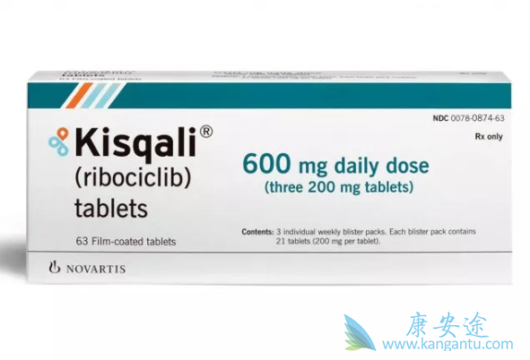 适应证三:瑞博西尼联合氟维司群的批准基于MONALEESA-3,这也是一项随机双盲、安慰剂对照试验。726例HR阳性、HER2阴性、晚期乳腺癌的绝经后妇女,未接受过前线或只接受过一次内分泌治疗。服用瑞博西尼的患者中位PFS为20.5个月,而接受安慰剂的患者为12.8个月。瑞博西尼的常见副作用是感染、中性粒细胞减少、白细胞减少、头痛、咳嗽、恶心、疲劳、腹泻、呕吐、便秘、脱发和皮疹。本次推荐的瑞博西尼起始剂量为口服600mg(200mg×3),每天一次,连续服用21天后休息7天。