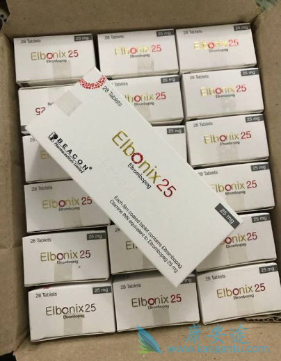艾曲博帕,在美国的商品名为Promacta,在其它地区为Revolade,该药是由葛兰素史克(GSK)公司研发生产,于2008年上市。目前艾曲博帕的仿制药是由孟加拉Beacon生产,其规格有25mg*28和50mg*28。对于那些吃不起原研药的患者,可以通过康安途远程就诊获取孟加拉板艾曲博帕。