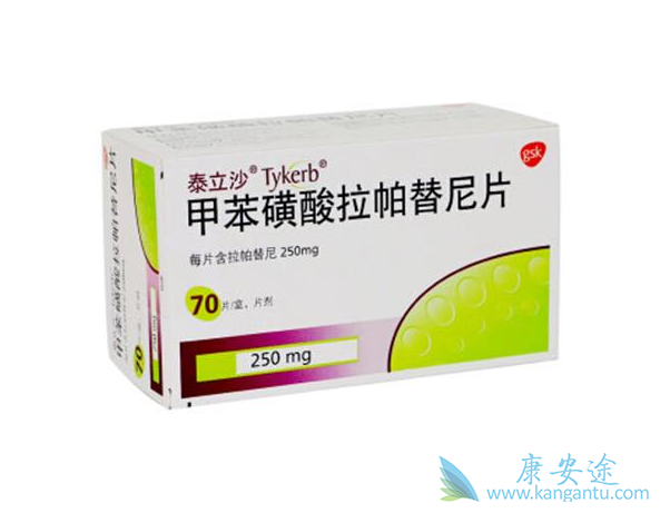 拉帕替尼是葛兰素史克公司研制的。 临床试验显示,对于那些已对罗氏的赫赛汀产生耐药性的HER2型乳癌患者,这种新药有很好的临床效果。Spector报告了拉帕替尼单药(1500mg/d)在难治性炎性乳腺癌(曾用过蒽环类药物或复发)中的Ⅱ期临床结果。病人分为两组A组(ErbB-2过表达)和B组(ErbB-1表达,ErbB-2不表达)。A组使用拉帕替尼的部分缓解率达62%,B组仅为8.3%。毒性反应主要表现为Ⅰ/Ⅱ级皮肤和胃肠道反应。这表明,拉帕替尼疗效与HER-2过表达有密切关系。