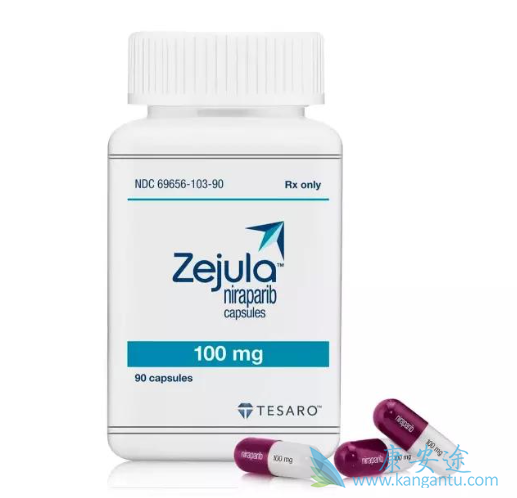 2016年,一项III项临床试验(NOVA)显示尼拉帕尼能有效延缓卵巢癌患者中位无进展生存期(PFS):应用尼拉帕尼的gBRCA突变患者中,中位PFS达21月,相较安慰剂组5.5月有明显优势,整体死亡风险下调73%;随访至18个月,Niraparib组50%的患者还未出现疾病进展。在无gBRCA组患者中,应用Niraparib的患者中位PFS达9.3月,死亡风险下调55%。