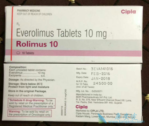 后来依维莫司被纳入医保,报销后的价格为5毫克规格的是148元。5毫克每片,一盒有30片,患者每天就要服用10毫克的量,一个月需要两盒。一个月就要花费在8000元左右。对于患者来说是也是一笔不小的负担。所以不少患者考虑到印度版依维莫司。印度版依维莫司虽然是作为仿制版本,它的药物在原材料和质量安全上是得到保障的,规格是10毫克一片,一盒有30粒,也是可以服用一个月的量。价格是相比于原厂药的四分之一,对患者也是一种新的选择。