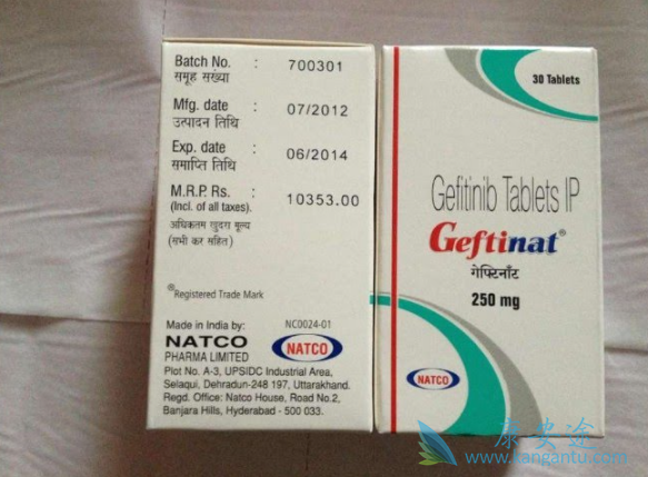 吉非替尼,商品名易瑞沙,由阿斯利康研发,是晚期EGFR突变非小细胞肺癌治疗一线用药。包装/剂型:薄膜衣片 0.25g x 10 片。贮藏/有效期:30°C以下保存, 有效期24个月。吉非替尼最常见的不良反应是皮疹、腹泻和肝损伤。吉非替尼的皮疹和腹泻大都温和,很少患者受这两种不良反应困扰。皮疹涂些维生素B6软膏,注意防晒,润肤基本可以对付;腹泻吃些蒙脱石散、腹可安可以控制。