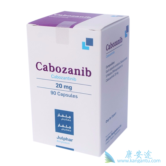 卡博替尼是一种小分子多靶点酪氨酸激酶抑制剂,靶点包括MET、VEGFR 2、ROS1、RET、AXL、NTRK和KIT等。美国FDA于2012年批准卡博替尼胶囊(140mg每天)用于治疗进展性,转移甲状腺髓样癌(MTC)患者,于2016年批准卡博替尼片剂(60mg每天)用于治疗经抗血管生成治疗的晚期肾细胞癌(RCC)患者,于2018年批准卡博替尼片剂(60mg每天)用于治疗接受过索拉非尼或其他标准全身治疗后进展的晚期肝细胞癌患者。一项研究评估了卡博替尼治疗RET融合阳性肺腺癌的疗效。