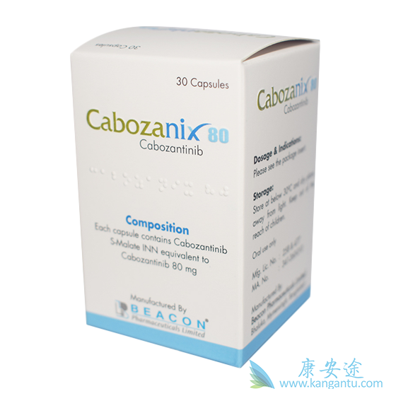高血压。卡博替尼的治疗导致高血压的发生率增加,在随机试验中,由美国高血压预防、检测、评估和治疗联合委员会评估的两组患者(卡博替尼 VS 安慰剂)的1期或2期高血压确诊率为61% VS 30%。开始治疗前和治疗期间定期监测血压。对医疗管理不能充分控制的高血压患者,停用卡博替尼,高血压得到控制后,恢复卡博替尼并减少剂量。不能用降压治疗控制的严重高血压停用卡博替尼。