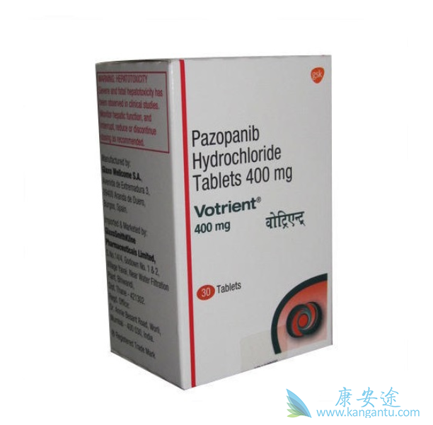 一项三期临床研究显示,与安慰剂相比,培唑帕尼使肿瘤进展或死亡的风险降低54%。总的来看,本品组患者的疾病无进展生存期(PFS)存活时间平均为9.2个月,安慰剂组为4.2个月。在先前未接受过治疗的患者中,本品组存活时间平均为11.1个月,安慰剂组为2.8个月;在先前接受过细胞因子治疗的患者中,培唑帕尼组存活时间平均为7.4个月,安慰剂组为4.2个月。