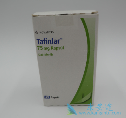 达拉菲尼,该药是一种有效的选择性BRAF抑制剂,在2013年被美国食品药品监督管理局(FDA)批准为单药治疗无法切除或转移性BRAF V600E突变的黑色素瘤,为该类别中第一种被证明具有抗脑内转移性黑色素瘤活性的药物,由于对正常脑组织中丰富的野生型BRAF激酶具有潜在的神经毒性作用,达拉菲尼专门用于防止黑色素瘤的血脑屏障渗透。
