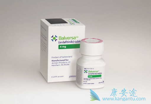 美国时间2019年4月12日,FDA加速批准 Balversa (Erdafitinib,厄达替尼) 用于治疗携带有FGFR3或FGFR2突变的铂类化疗后疾病进展的局部晚期或转移性膀胱癌成人患者,包括新辅助或辅助铂化疗12个月内的患者。成为了首款获批针对转移性膀胱癌的靶向药物。