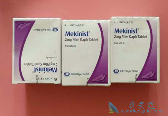 曲美替尼(Trametinib)是由美国葛兰素史克(GSK)研发的一种治疗黑色素瘤新药,属MEK抑制剂,2013年获美国FDA批准上市,2014年获美国FDA批准MEK抑制剂曲美替尼和BRAF抑制剂达拉菲尼联合治疗BRAF V600E或V600K突变的不可手术或转移性黑色素瘤。该批准是基于一项开放的I/II研究,结果显示:与达拉菲尼单药治疗相比,曲美替尼和达拉菲尼联合治疗能有效提高总体反应率(ORR)。在2013年5月,这两个药物分别作为单药被批准使用,而现在这是首个批准用于黑色素瘤的联合治疗。