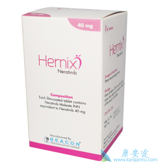 这项多中心、非盲3+3剂量递增Ib期研究于2015年2月~2017年7月从5个医疗中心入组曲妥珠单抗+帕妥珠单抗+紫杉类治疗失败的HER2阳性晚期乳腺癌患者27例,每3周静脉注射T-DM1每次每公斤体重3.6毫克,每天口服来那替尼剂量递增至120、160、200、240毫克。该方案显示出一定抗肿瘤活性,确立推荐 II 期剂量是 T-DM1 3.6 mg/kg+来那替尼 160 mg/d。19 名可评估患者中,12 名(63%)具有客观反应。所有来那替尼剂量都有反应。