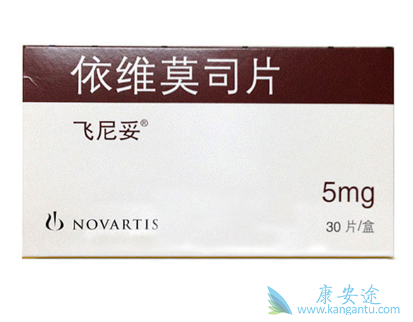 依维莫司(飞尼妥)用于晚期肾癌患者的治疗,于2013年在我国上市,临床上常被用于乳腺癌的治疗,依维莫司是一种适用HER2阴性晚期乳腺癌绝经后女性患者,还具有免疫抑制作用、抗肿瘤作用、抗病毒作用、血管保护作用等。在一项研究中发现,依维莫司对于使用过舒尼替尼或索拉非尼耐药后的患者能够有效延长生存期,相比于安慰剂组中位无进展生存期1.9个月,依维莫司达到了4.9个月,而在实际应用中,很多患者可以获得更久的生存期限。
