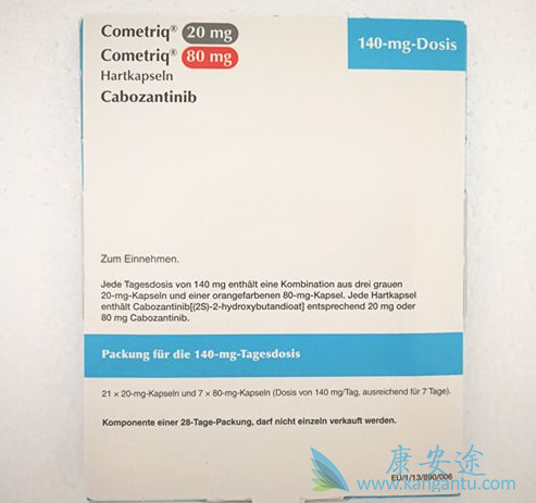 卡博替尼是胃溶片剂和胶囊,空腹服用,亚洲患者单药服用卡博替尼应使用60mg每天的剂量,联合其它抗肿瘤药物时适当减量。76 mg的卡博替尼苹果酸盐相当于60mg的卡博替尼。如果腹泻严重,可使用肠溶胶囊。EGFR和ALK突变NSCLC患者联合用药时,卡博替尼剂量范围为30~50mg(苹果酸盐),还可以使用间歇给药方式,比如吃5天停2天。微信扫描下方二维码了解更多: