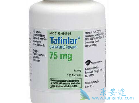 2017年6月,美国FDA批准了达拉非尼与曲美替尼联合治疗用于治疗BRAFV600E突变的转移性非小细胞肺癌,总有效率超过 60%,疾病缓解时间长达 12.6 个月。BRAF癌基因突变在所有非小细胞肺癌患者中占2%~4%。达拉非尼抑制BRAFV600E激酶,导致ERK磷酸化降低和抑制细胞的增殖,使基因突变的BRAFV600E的癌细胞生长停滞,并导致细胞死亡。