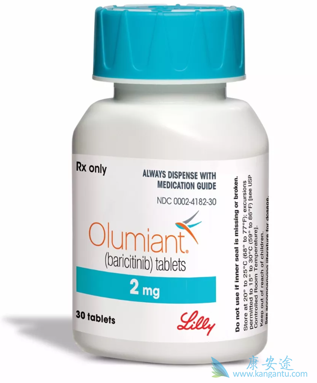 产品名:Olumiant;通用名:Baricitinib(巴瑞克替尼);规格:2mg*30;服用剂量:每次2mg,每日一次,与食物同服或不同服皆可。巴瑞克替尼是选择性、可逆性JAK1和JAK2抑制剂,目前临床开发用于多种炎症性疾病和自身免疫性疾病的治疗,除类风湿性关节炎外,对强直性脊柱炎(AS)、银屑病、特应性皮炎、系统性红斑狼疮、溃疡性肠炎(UC)、斑秃等也有相关有效性研究数据。